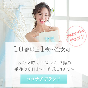ココサブは、ブライダル業界で多大なコストのかかる広告・人件費を最小限に抑えております。そのため、高品質のペーパーアイテムを、どこよりも安く、お手頃価格で販売することが可能なんです。