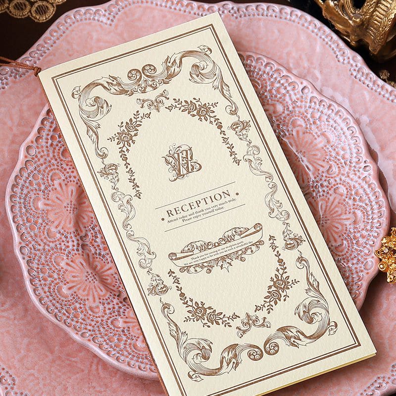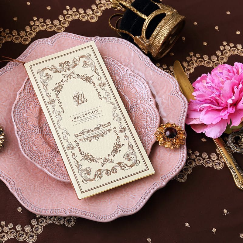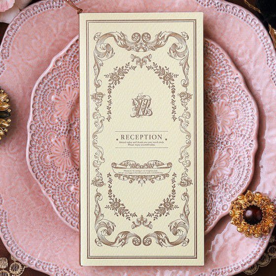 アンティークなデザインが美しい「シェーンブルン テレジアイエロー」席次表は、