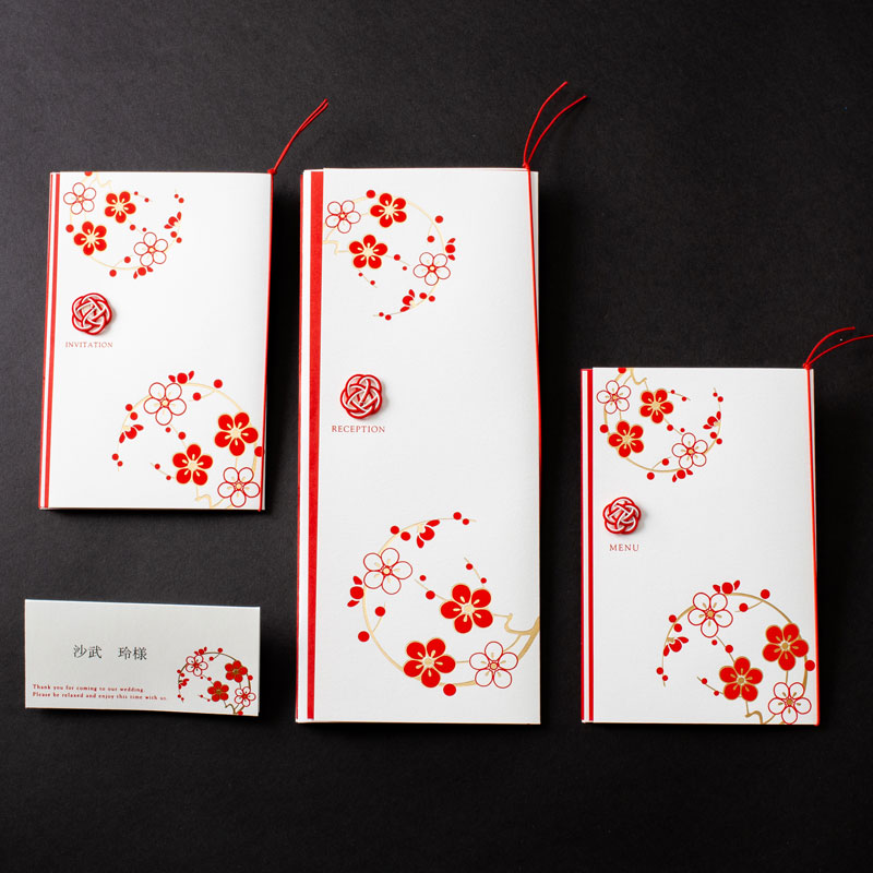 スタイリッシュで華やかな印象の「朱玉」結婚式席次表。